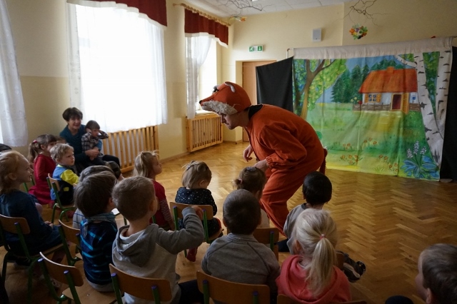 29 października 2015 r. w naszym przedszkolu wystąpili aktorzy z teatru „Duet” z Krakowa przedstawiając bajkę pt: „Kotek i kogutek”. Dzieci z zainteresowaniem oglądały przedstawienie o dwójce przyjaciół i ich przyjaźni. Zaprezentowana bajka miała na celu nauczyć dzieci rozsądku, ostrożności i posłuszeństwa.Dzieci dowiedziały się, że nie wolno ufać obcym osobom, nie należy otwierać drzwi, gdy rodziców nie ma w domu. Aktorzy zwrócili również uwagę, że dobrych rad nie wolno lekceważyć.